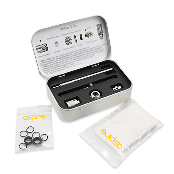 The Aspire Triton RTA System, is simple and easy to use but useful for DIY coils for Aspire Triton Atomizer. Aspire proudly presents the Triton tank system. This all new tank brings you an all new style of adjustable airflow control that will allow the user to really dial in on their desired airflow setting. The Triton also delivers the same style of airflow adjustment at the drip tip. So no matter if you want to mouth to lung or go straight to lung the all new Triton‰ۡóÁÌ_åÈs airflow control has you covered. Combine this with a convenient top fill method and our subohm coils and you have a truly variable tank system. It comes with 1 x Upper hardware 1 x Resistance wire&wicking 1 x Middle Hardware 1 x O-ring & Rubber grommet insulator 1 x Lower hardware& Screw Gauge of wire Inner diameter Width Suggested resistance Suggested rating 26 gauge/0.4mm 3.5mm 4.0mm 0.9 Ohm 15-20 Watts 24 gauge/0.5mm 3.5mm 4.0mm 0.5 Ohm 20-25 Watts 22 gauge/0.6mm 3.5mm 4.0mm 0.4 Ohm 20-25 Watts 21 gauge/0.7mm 3.5mm 4.0mm 0.3 Ohm 25-30 Watts
