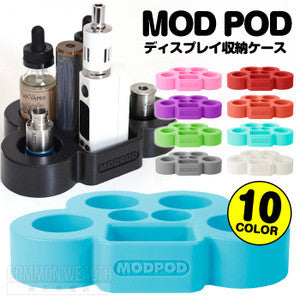 Mods, batteries, and vaping supplies scattered all over your desk? The MODPOD is the solution to your vaping organization problems. Custom designed to keep your advanced gear neatly stored, while providing protection and convenient easy access. The MODPOD offers a series of four large holes and two smaller holes. The depth and size of these holes were given careful consideration before a final design was created. The large holes are 35 mm across and sized to accommodate large bottles of e-liquid, as well as 26650 batteries and mods. The small holes are 24 mm across and will accommodate smaller bottles of liquid, 18650 and other similarly sized batteries and mods. The holes are all 22 mm deep, which insures that your mods and bottles won‰ۡóÁÌ_åÈt tip over. Additionally, a 29 mm by 48 mm rectangular recess offers storage for anything from a collection of drip tips to an rDNA complete with Shark Skin. Streamline your vaping experience, and order one of these unique pieces for your desk today!