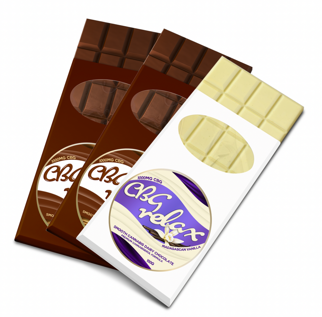 CBG Relax Chocolate brings you amazing flavours combined with a generous 1000mg of premium CBG conveniently packaged in to a 100g bar.
