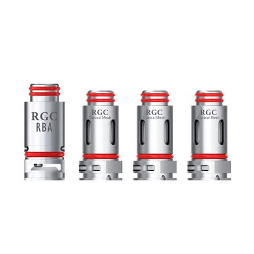 The Smok RGC Series Coils for RPM 80 and RPM 80 Pro Kits, you can choose the Conical Mesh Coil or RBA Coil. the RGC Conical Mesh Coil powered by nexMesh technology, designed for a powerful, warm throat hit with massive vapor and amazing flavor. the unique conical structure can maximize the bottom of the airflow inlet and condense the vapor as it flows through the coil to the drip tip, creating an unparalleled burst of flavor. the RGC RBA Coil designed to help you for your individual vaping style, contains a screwdriver that makes it easy and convenient to rebuild the coil.