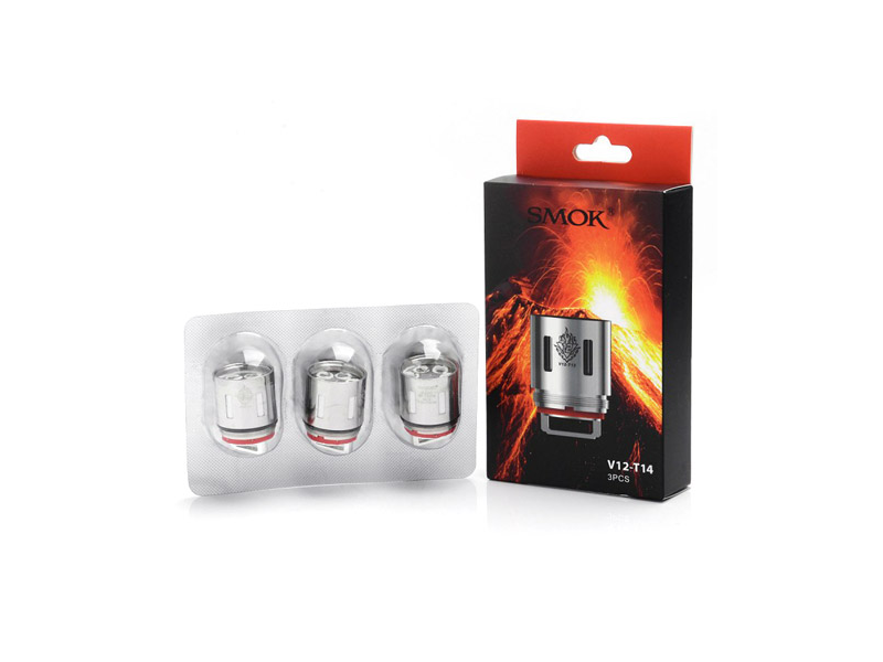 The Smok TFV12 V12-T14 Replacement Atomizer Heads comes a pack of three replacement coils for the popular Smok TFV12 tank, with 0.12Ω Resistance with wattage range of 80W to 350W, and recommended wattage range from 120W to 200W.Features0.12Ω ResistanceFourteen Coil Atomizer Head80W-350W Wattage Range120W-200W Recommended WattageOrganic Japanese Cotton